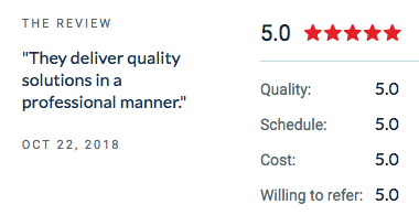 Our consistent communication, work ethic, and advice informed by our in-depth experience once again earned us a perfect score in every category.