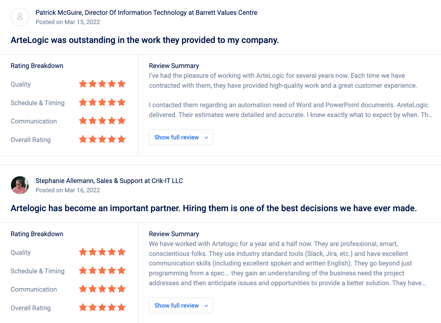 Testimonials and client reviews provide real-time information about how the nearshore software development services provided by Unicrew work and benefit its clients. These prove why the company is valued by its clients. Some of the positive reviews and testimonials are shown below.